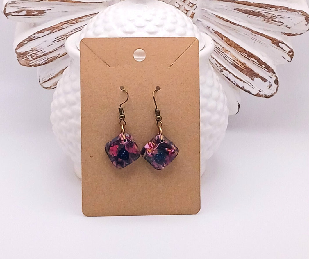 Field of wildflowers with an accent of midnight blue paired with brass components. Sealed with epoxy finish. 3/4"W x 3/4"H x 1 1/2"L.