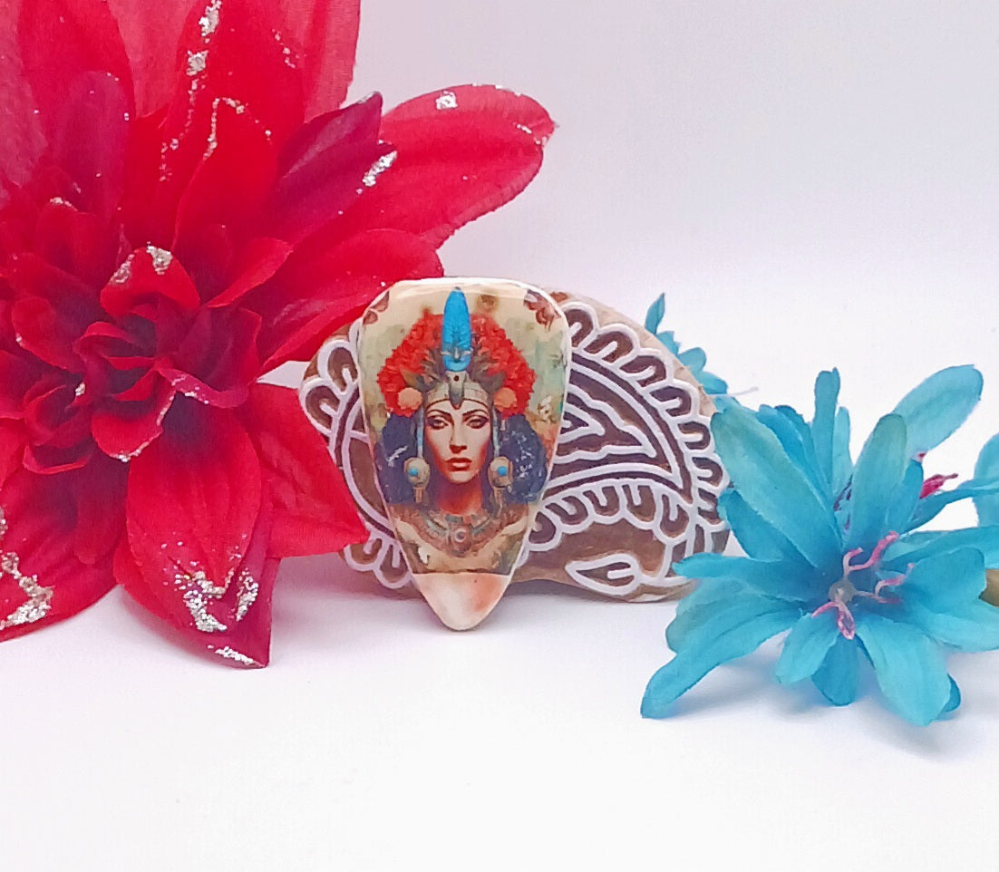 18.5mm shield pendant. Hsnd painted color fade at bottom. Resin on front and back. No holes.