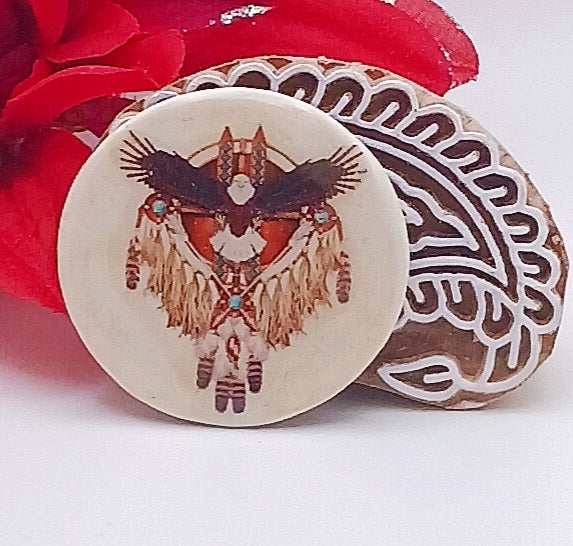 35mm round pendant resin on front and back. No holes.