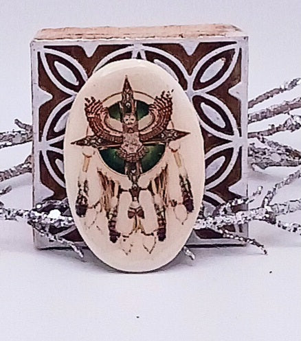 19mm x 35mm Oval pendant. Resin on front and back. No holes